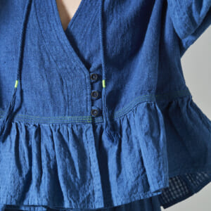 「カラコットン藍染カシュクールブラウス」インドの原種のオーガニックコットンを使用した正藍染のトップス。