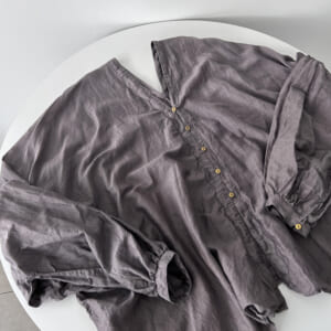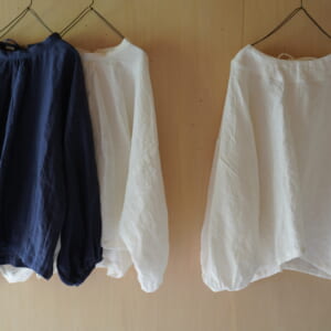 「直角襟のブラウス」襟元が美しいブラウスを作ってみたいと思い、制作しました。少し深く直角のライン、襟の後ろは程よいカーブ。古い映画の女優さんの衣装のように。