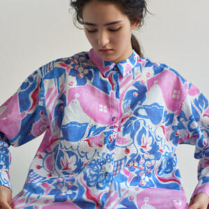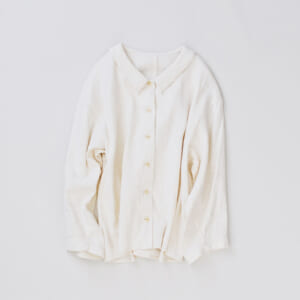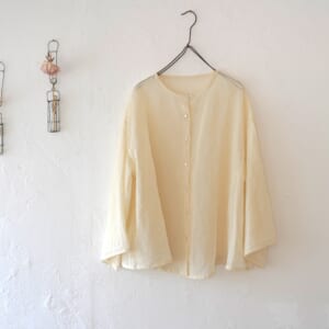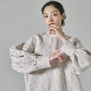 「鏡の花 blouse」透かし模様のブラウス。冬はセーターと合わせたり、夏は羽織として一年中着られます。