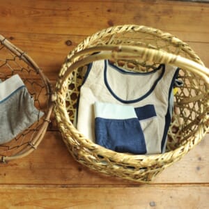 「おうちトップス・おうちぱんつ」ガーゼ服ブランド・aoとつくったトップスとぱんつは、なめらかな極上生地を使っています。肌にとっての心地よさ、しめつけのなさを大切にしました。