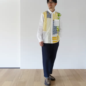 「ダンペンシャツ」シャツを作るたびにたくさん生まれるハギレを一枚一枚ならべて繋ぎ合わせ、世界に一つだけのシャツができあがります。