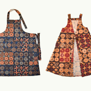 「リネンエプロン」ハグジードーナツとのコラボレーションテキスタイルは料理も楽しくワクワクした気持ちにさせてくれるエプロンです。