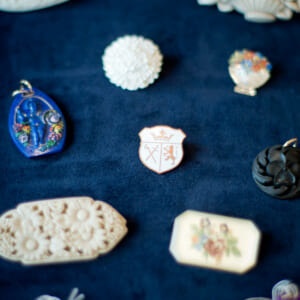布博ならではの、テキスタイルに合うような珍しいブローチやヨーロッパのヴィンテージパーツをたくさんお持ちします。