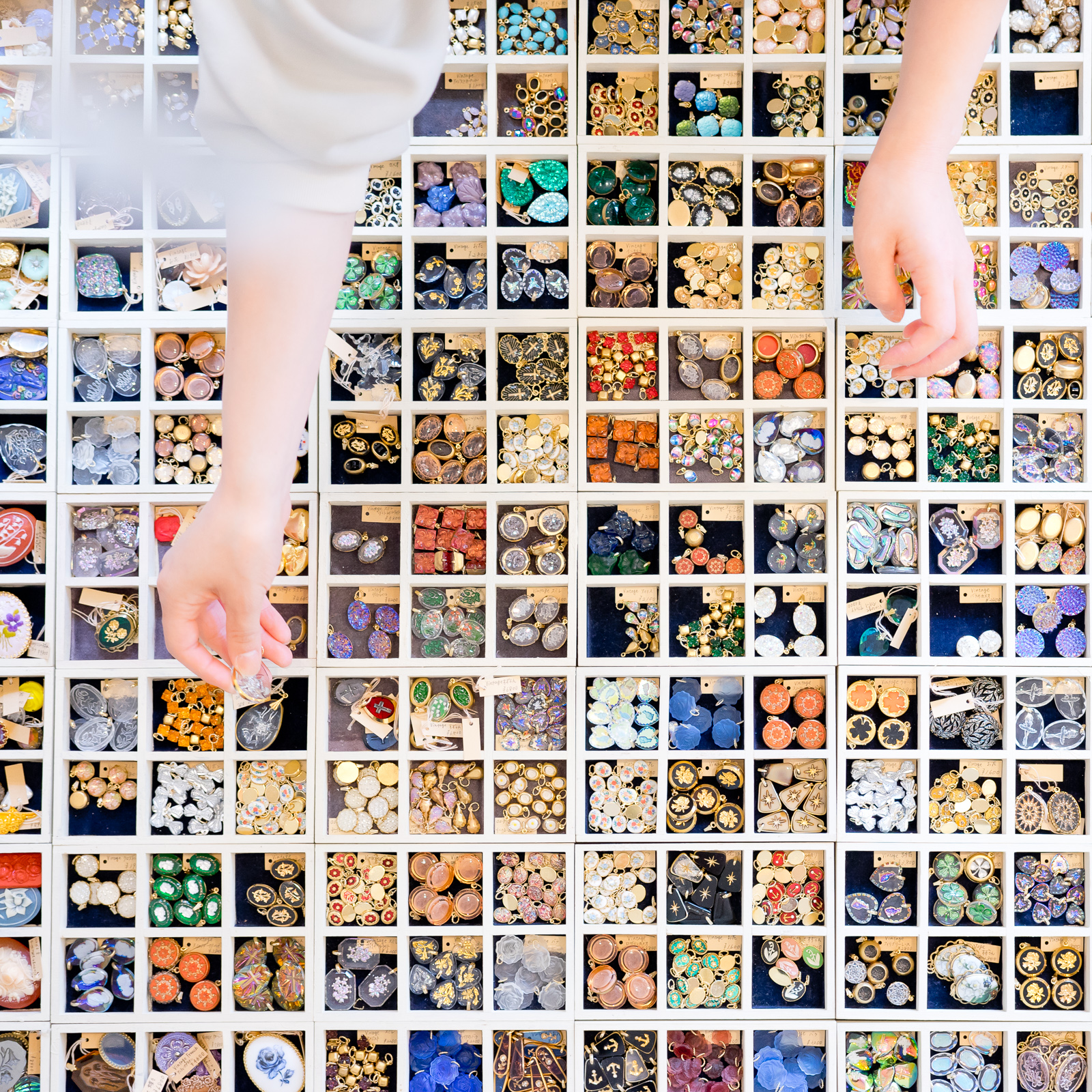 6,000種類を超える品揃えを誇る「ヴィンテージアクセサリーパーツ – le meace – レミース」は、自由が丘と横浜にて、ドイツやフランス、チェコなどヨーロッパで買い付けたビーズやガラスパーツ、ボタン、金具などの珍しいアイテムをコレクションしています。角度や光源により微妙に色合いが変化するサフィレットはネックレスに、キャンディのように愛らしいビーズはイヤリングに、ここでしか出会えないパーツで手づくりしたアクセサリーは、あなただけの宝物に。
