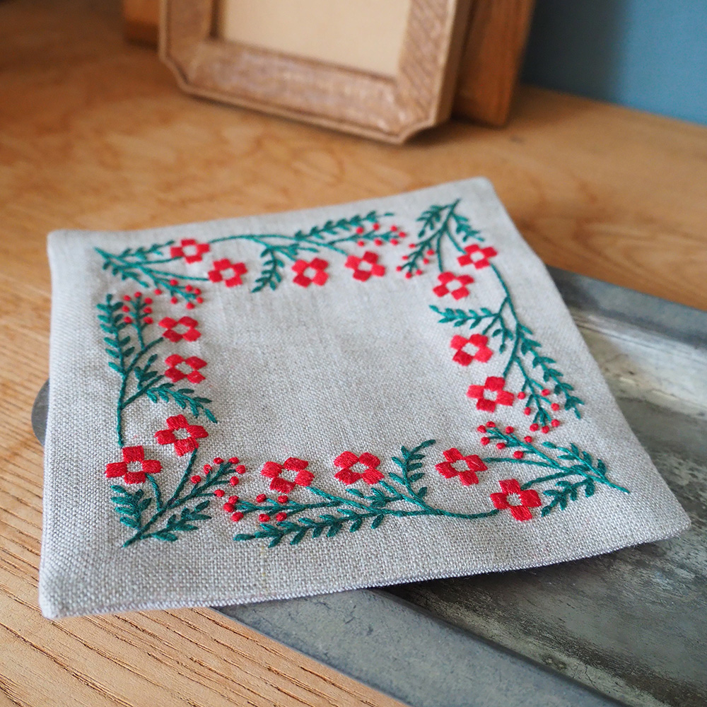 オリジナル図案の刺繍キットは布博初出しデザインもあります。生地に図案が印刷済みなので、気軽に楽しめますよ。