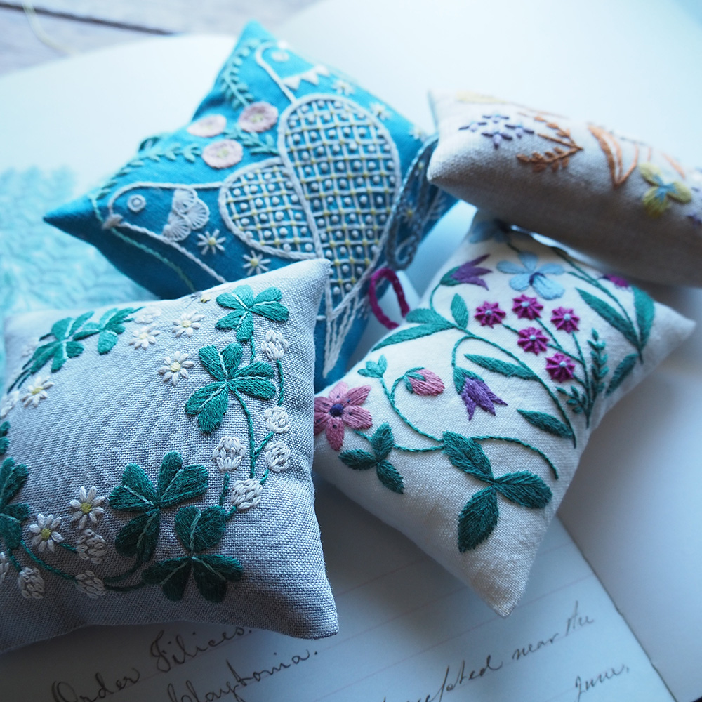 書籍の制作、刺しゅうアイテムのデザイン、手芸誌への作品提供、個展の開催など幅広く活躍するマカベアリスさん。近年ではアパレルへの刺しゅう図案デザイン、企業カレンダーへのデザイン提供、テキスタイルデザインなども手掛けています。季節の流れの中に感じる、小さな感動や喜びをかたちにしたいという思いのもと作られる刺繍をどうぞご堪能ください。