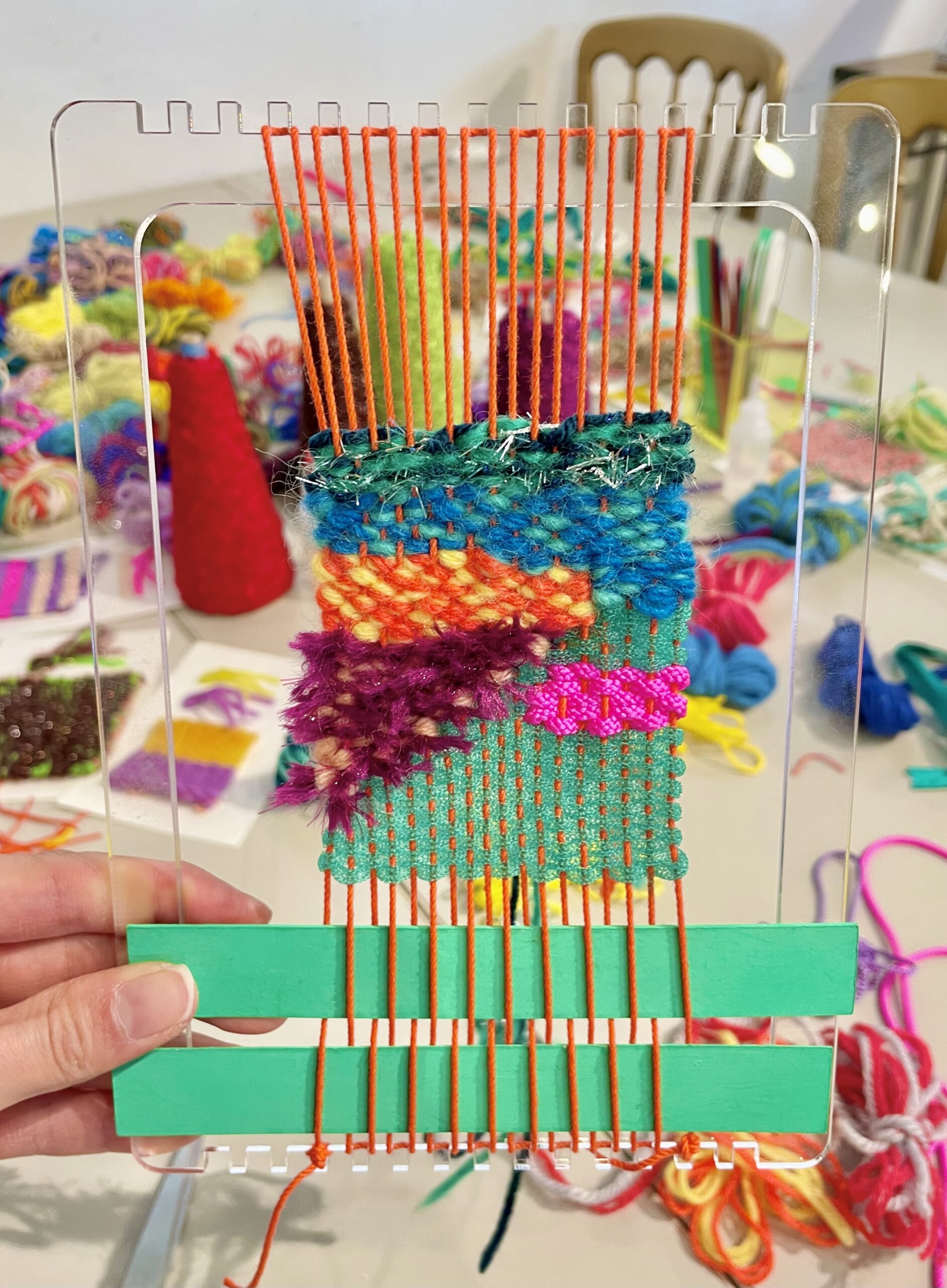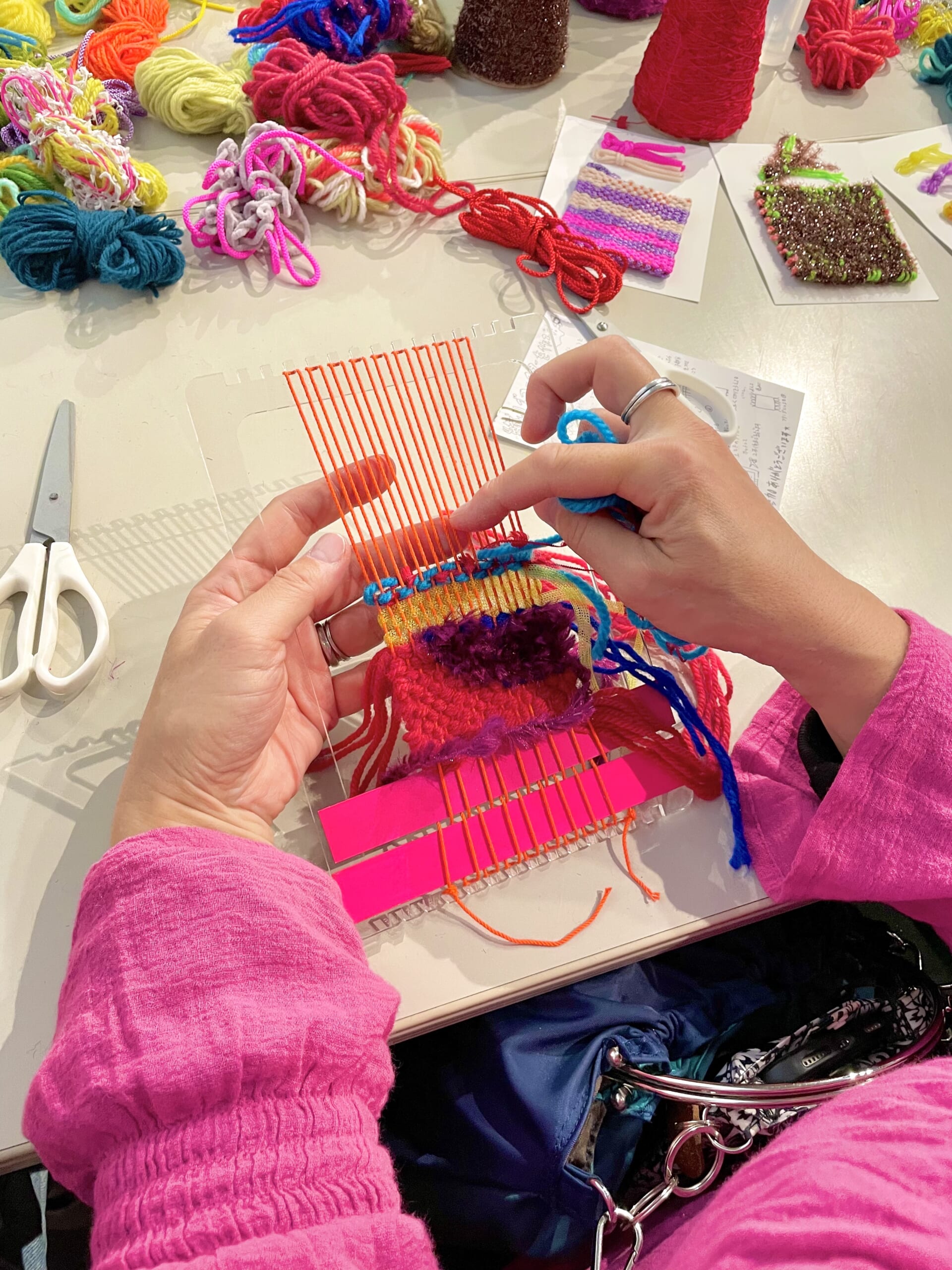 日々の暮らしの中で目にしたものや感じたことを丁寧に織り込み、“つづれ織”技法で表現するアラキケイさん。自分の内側を表現したいという欲求から現れた明るく楽しい色やかたちをベースに、今は、あらゆる場での他人とのコミュニケーションから新たなイメージを吸収して作品に昇華させています。アーティスティックなアラキさんの作品の一部になってみませんか?