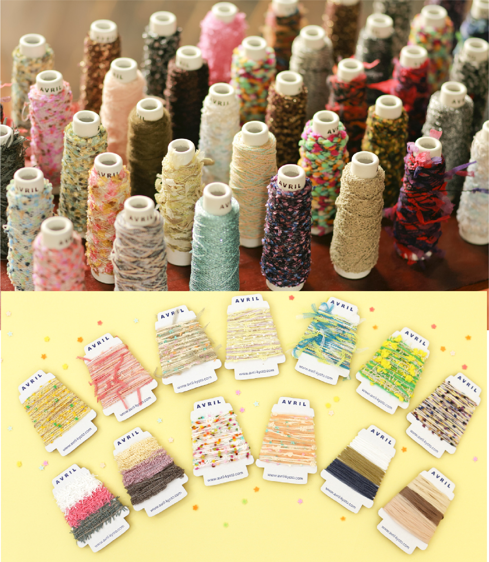 京都にあった「AVRIL」の糸作りを引き継いで、編み物や織物の作り手の笑顔に出会うために、ちょっと変わったファンシーな糸や表情のある毛糸、「いいね、この糸」と手に取ってもらえるような糸を届けてくれます。きっとたくさんのわくわくが見つかりますよ。