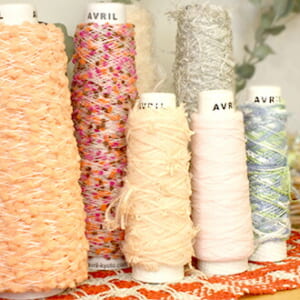 AVRILのオリジナルファンシーヤーン、AVRILの糸を使った編み物キット、AVRILの織り機Room30。
