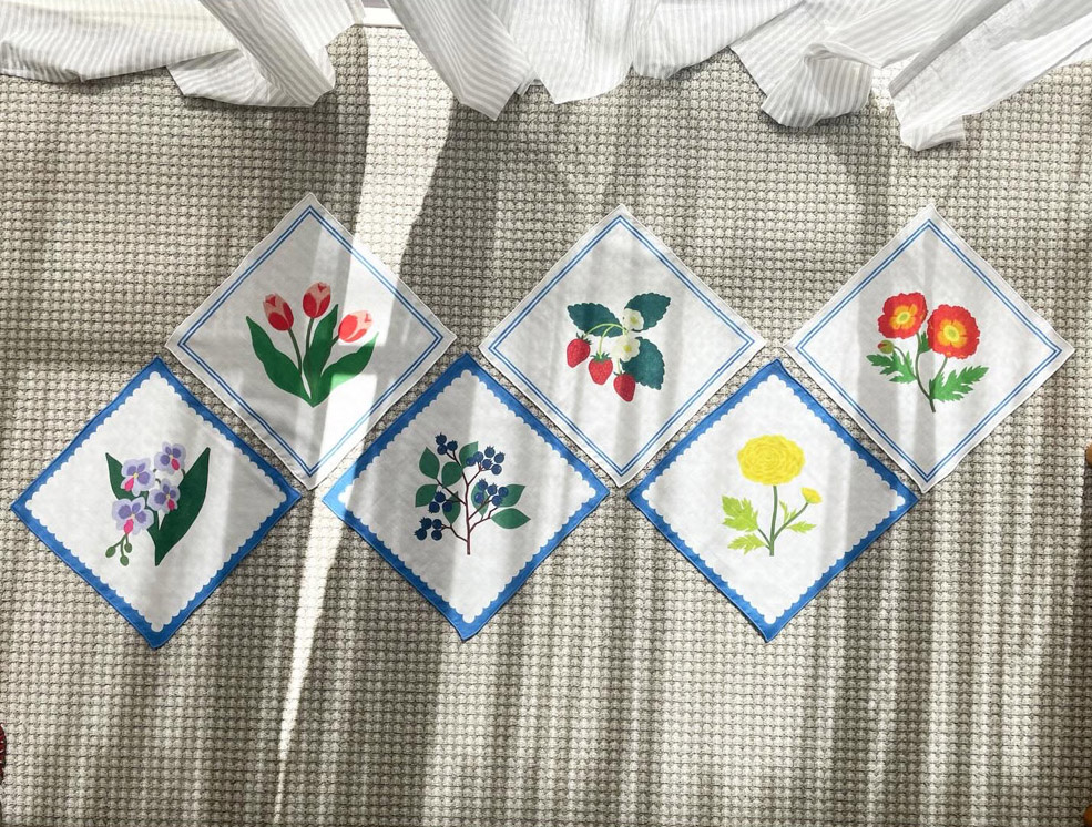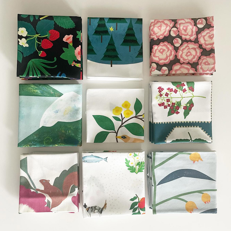 植物に加えて私たちの生活を彩ってくれるモチーフの新柄のハンカチ。素材も新しく綿100%でご用意します。