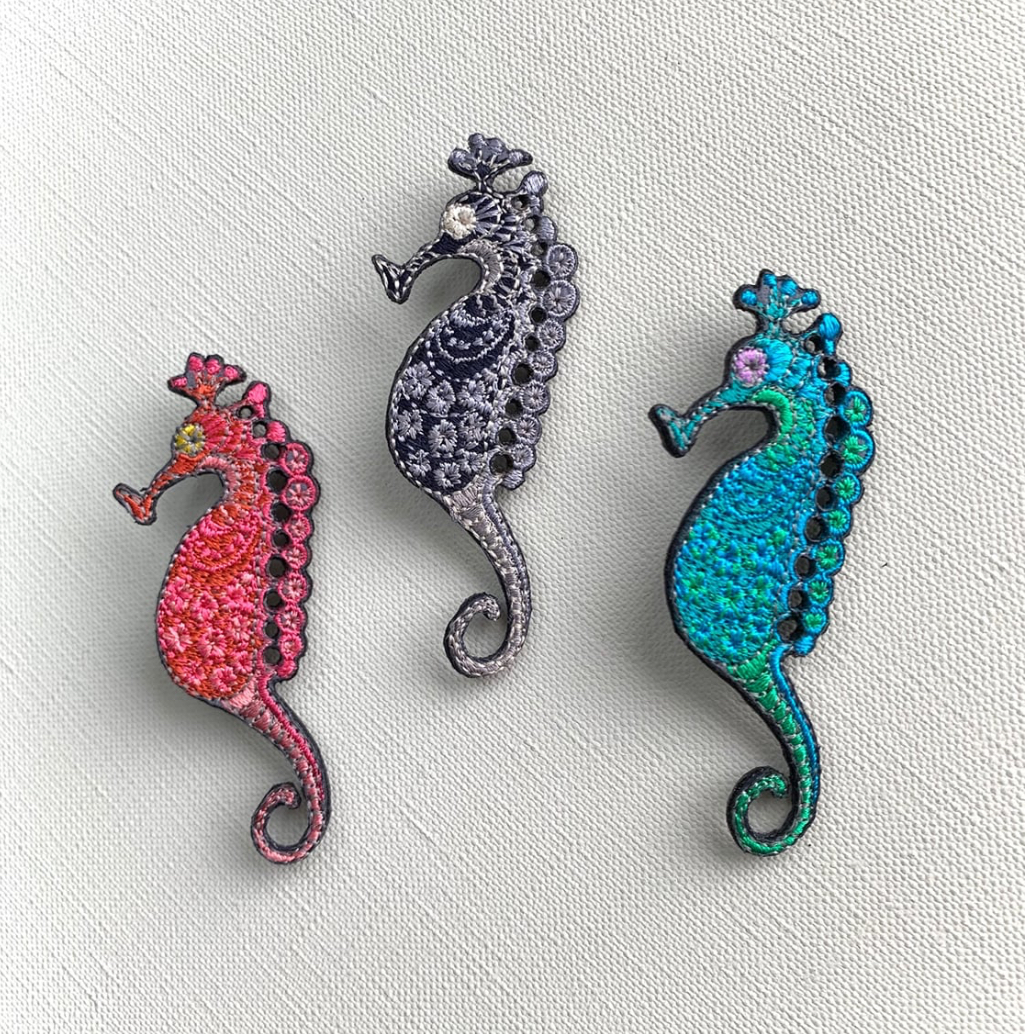 海の生き物をモチーフにした刺繍ブローチです。