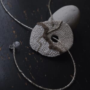 一見ドーナツに見える首飾り。モチーフは石から着想を得ているのですが、身につける方に自由に想像を膨らませていただけたら嬉しいです。