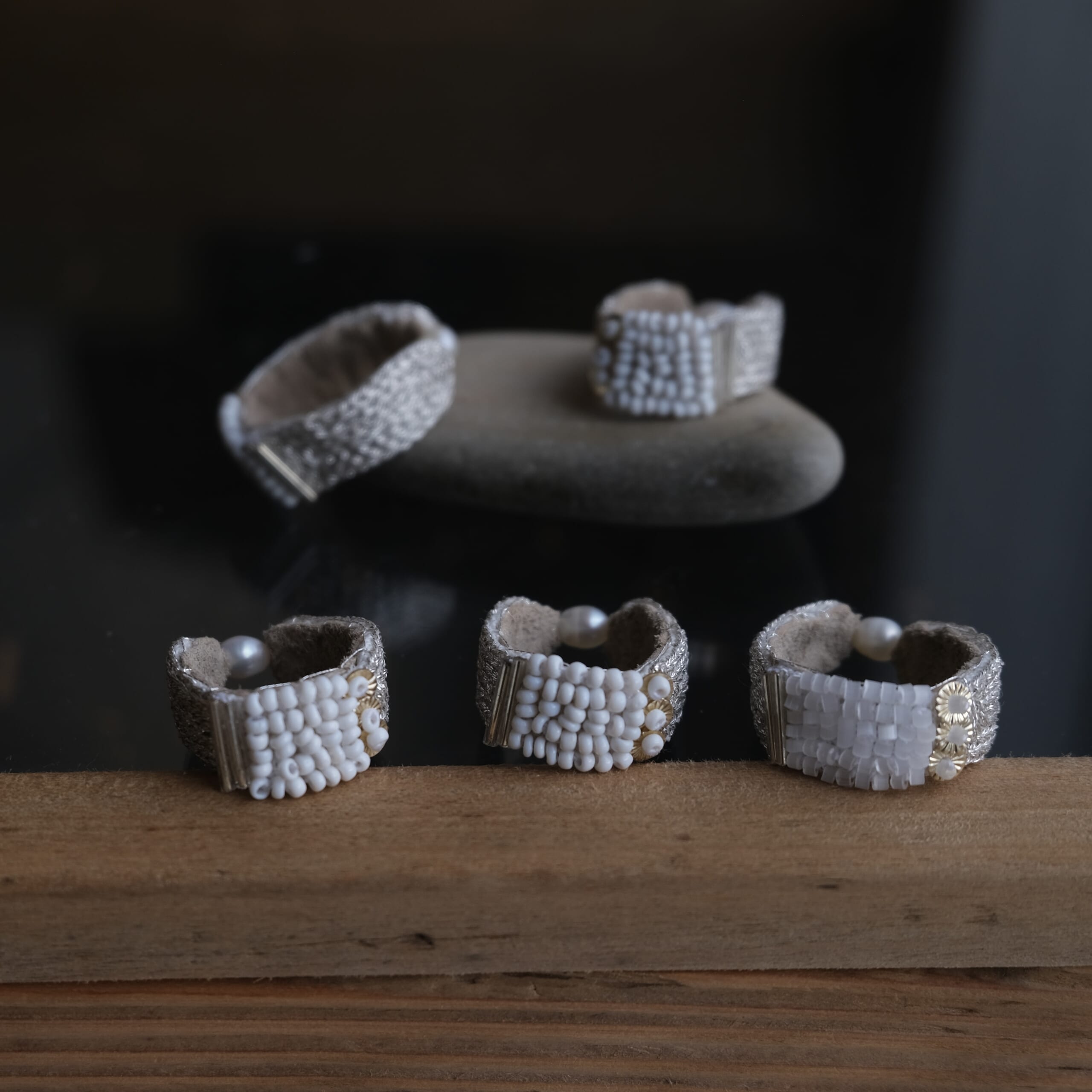 harishigotoといえば耳飾り、首飾り、腕輪、指環。そしてその重ね付けです。harishigotoの装身具同士でも、またお気に入りの装身具との重ね付けも!