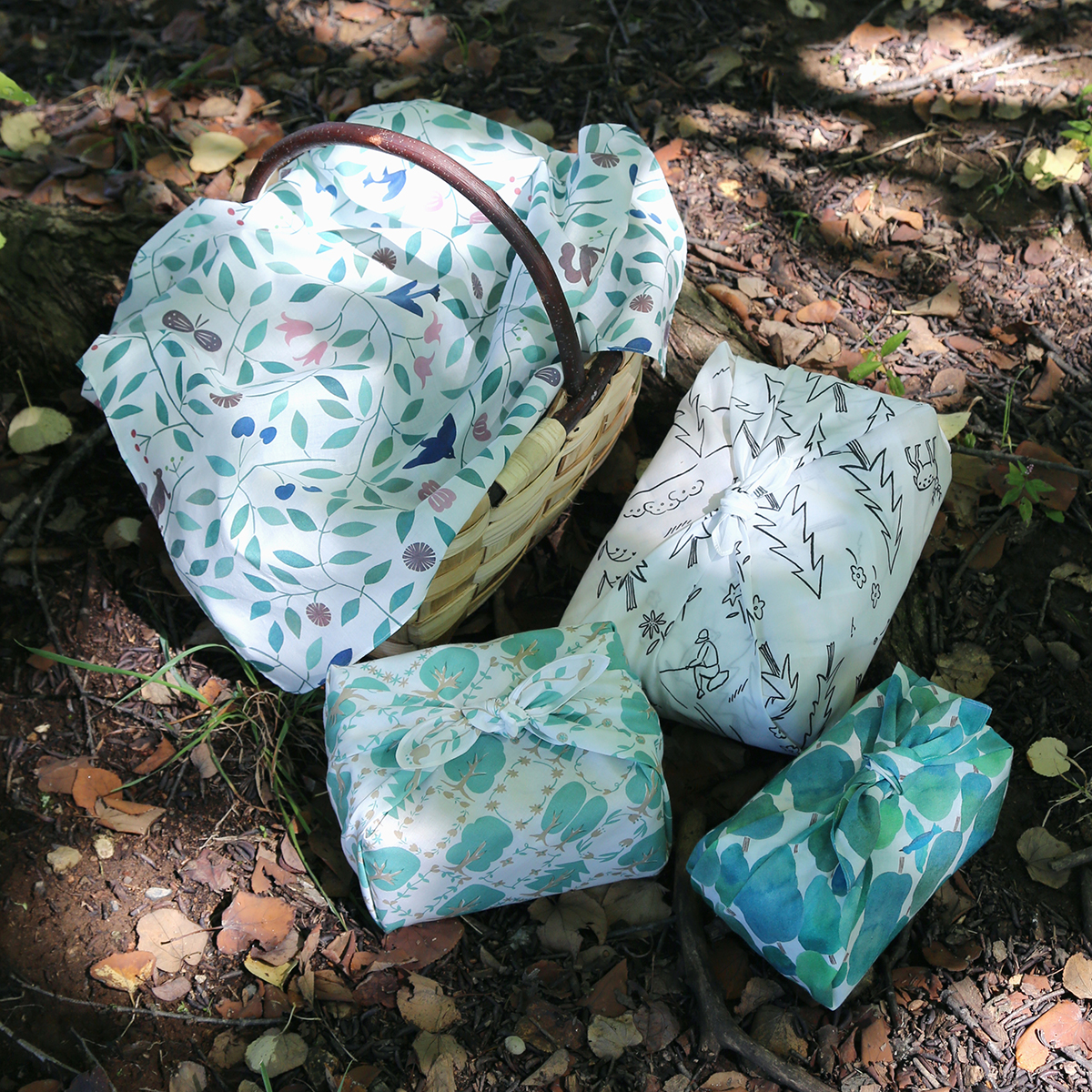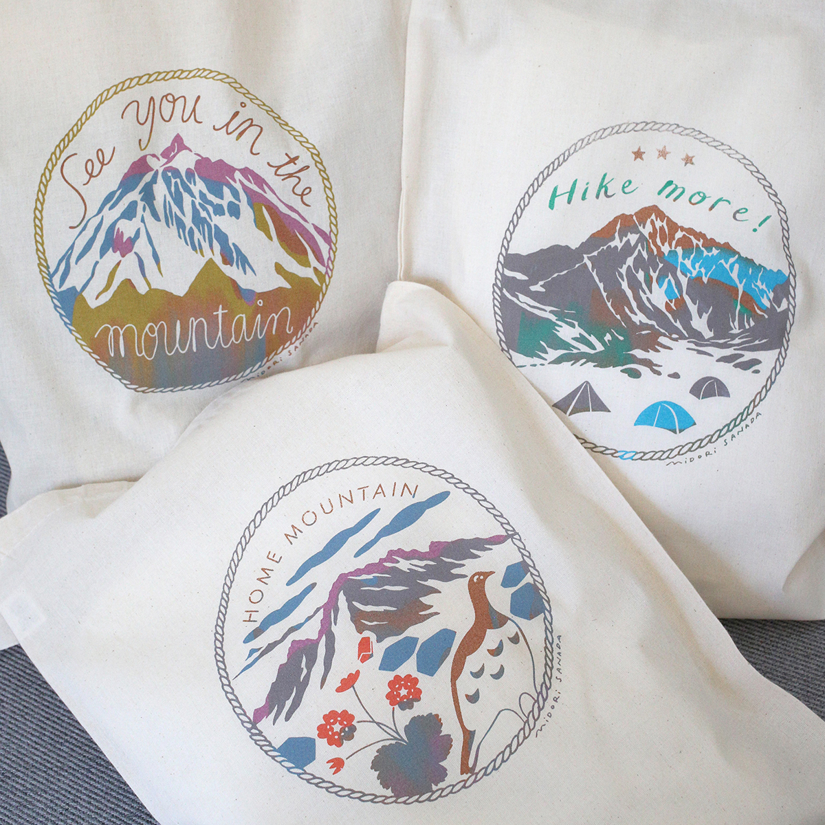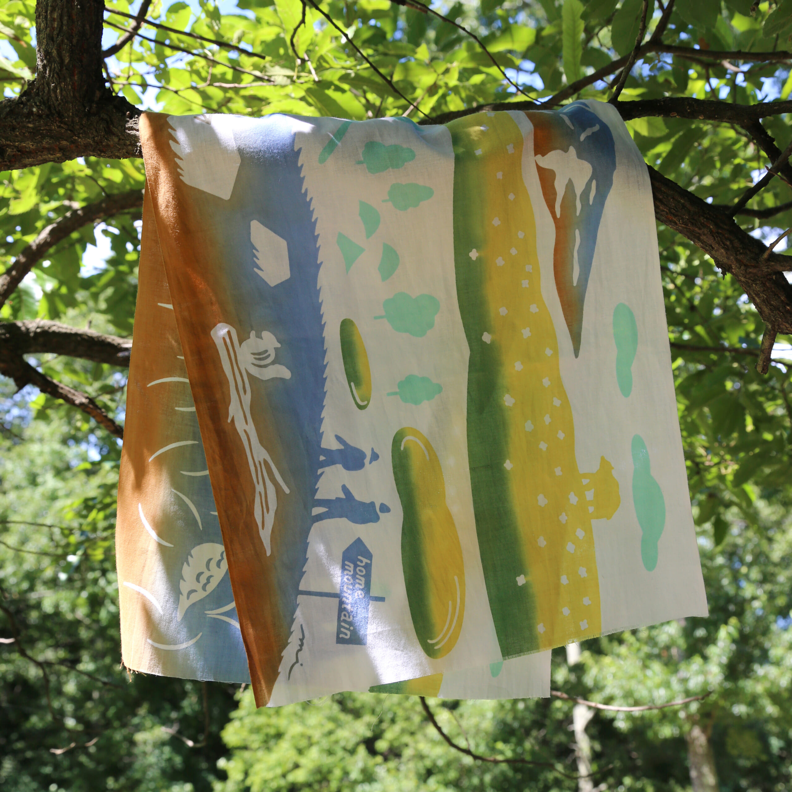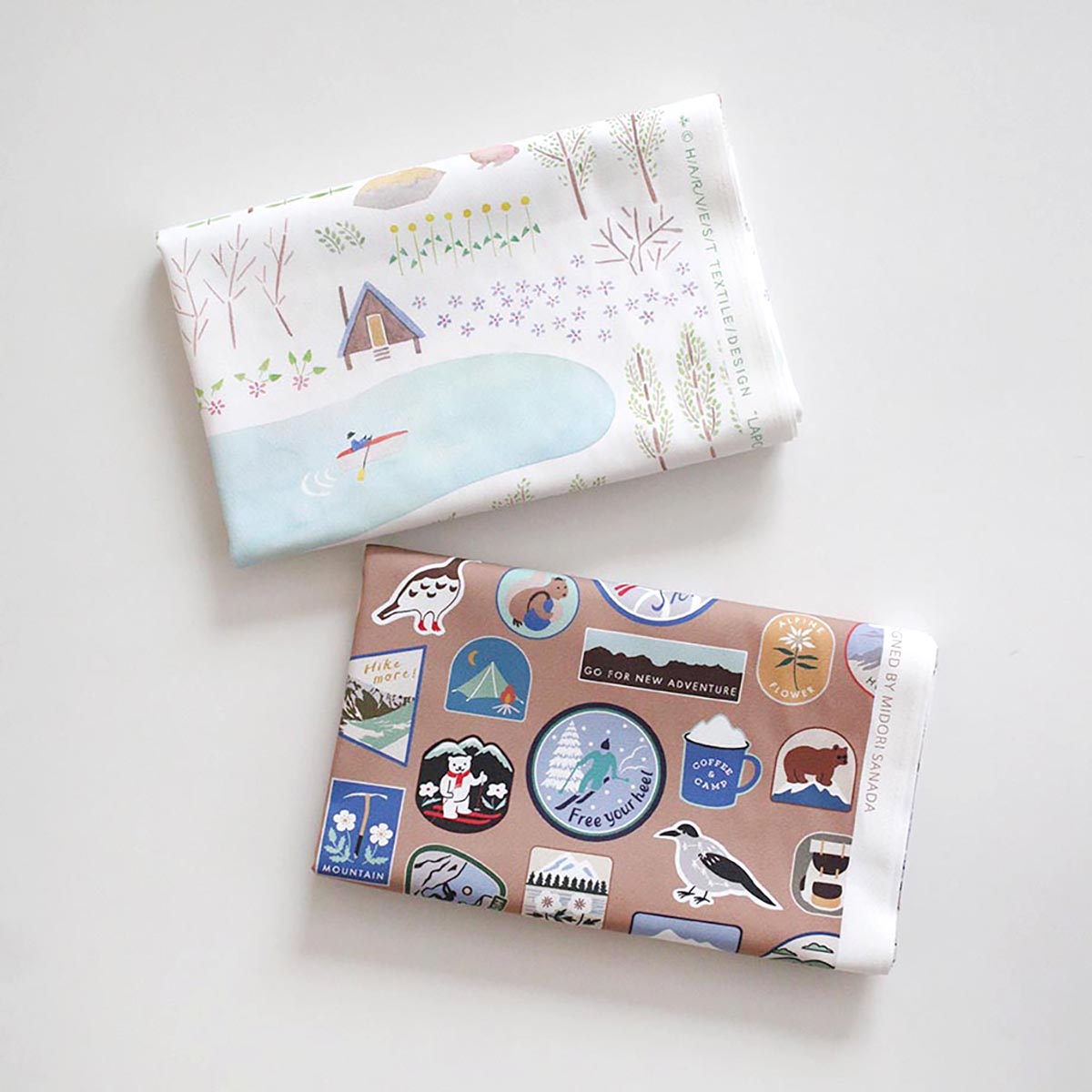 山や自然をモチーフに描かれた図案でデザインしたハンカチや手ぬぐい