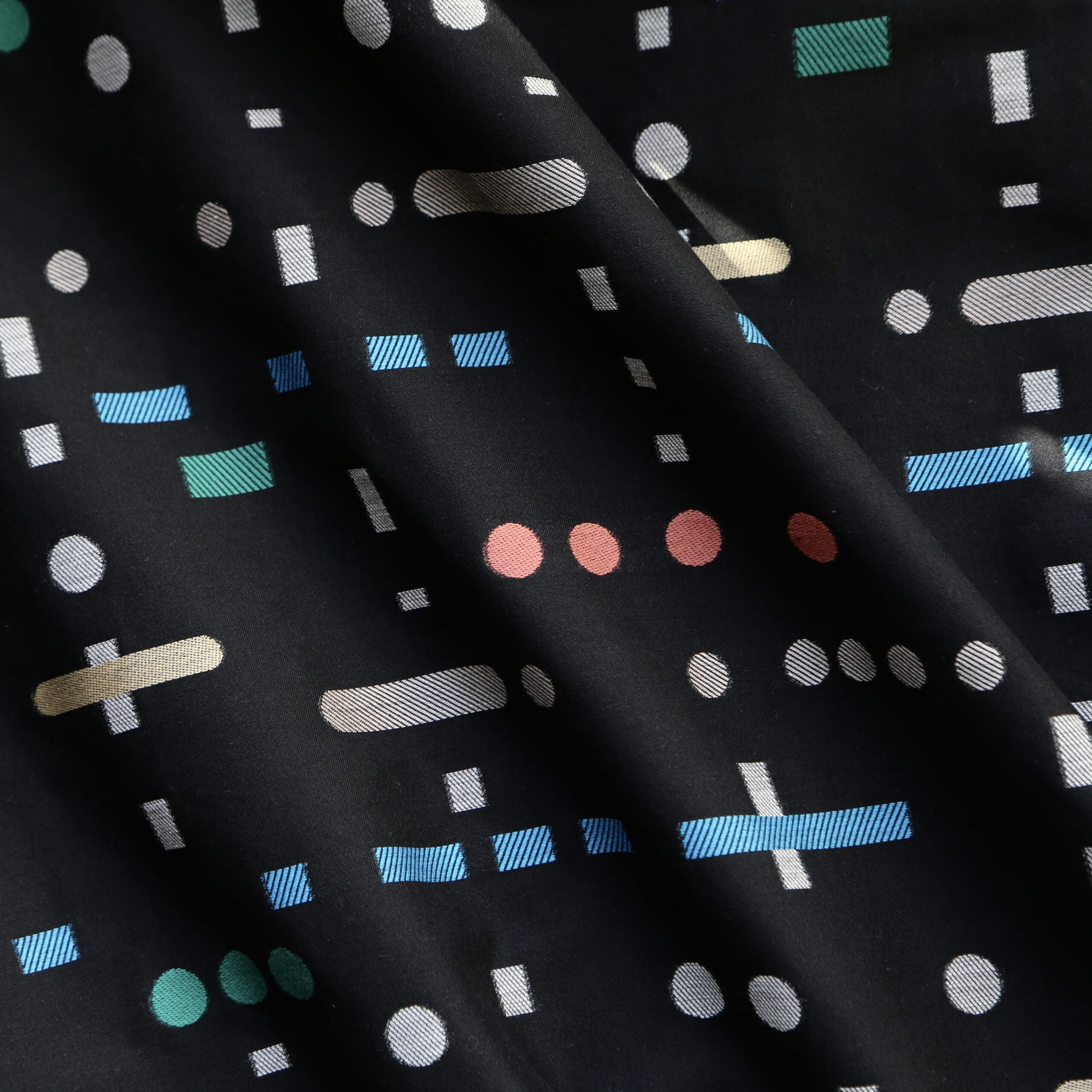 IBAMOTO HONTENの看板アイテムといえば「チューリップ」(生地幅 約150cm / 綿100% / 播州織・兵庫県西脇市産)。大きくゆらゆらと連なる模様を、糸で絵を描くように表現した織りのテキスタイルです。綿100%ながら、すべらかで上品な光沢のある大人のチューリップです。