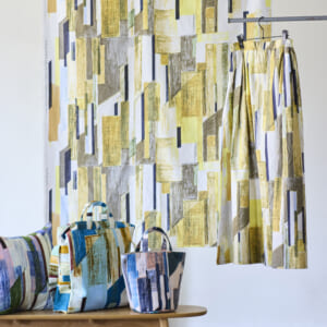 ぱっと目を引く鮮やかな色合い、細く太く躍動する筆致、不規則に連なる丸や四角のモチーフ。「YUMI YOSHIMOTO」のテキスタイルは、力強さと繊細さを併せ持っています。空間の雰囲気をガラリと変えるようなデザインのエネルギーを感じてみませんか。