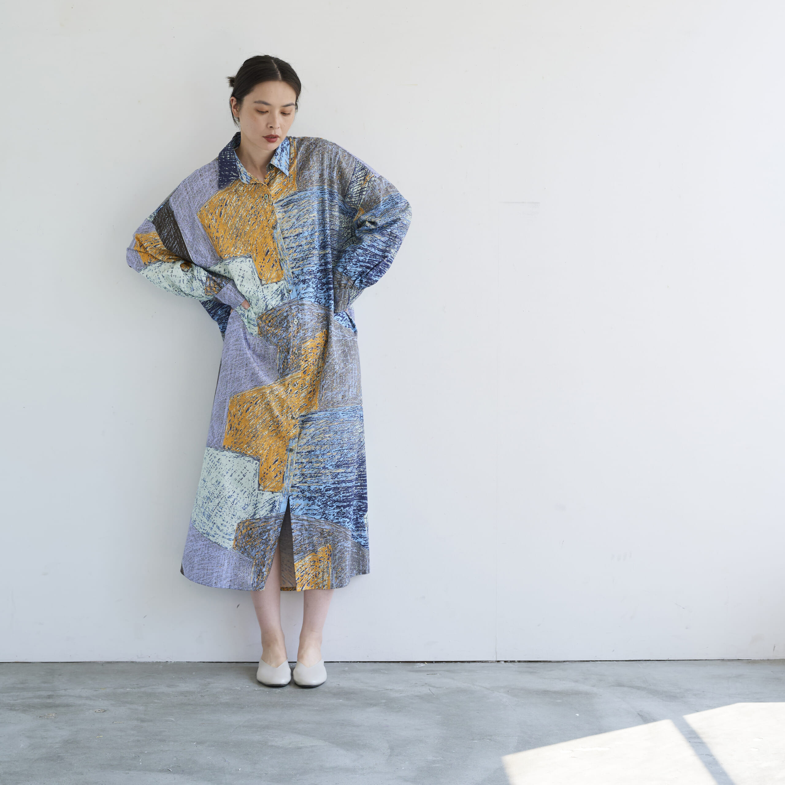 新作のプリントテキスタイル、「Lake and city」は、湖と街を描いた柄で、写真のようにワンピースなどの洋裁におすすめです。他にもたくさんの新柄があります。