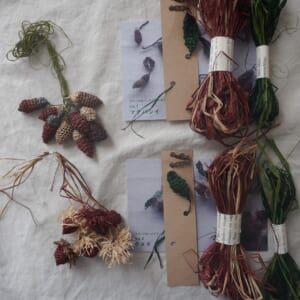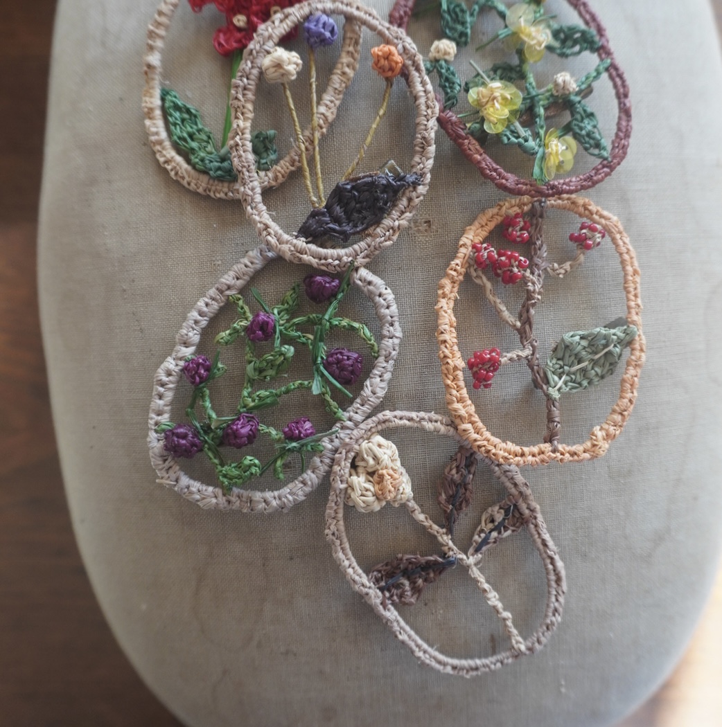 鎌倉にお店を構える「木木」。雑貨店を営む中で、ラフィアという素材との出会いがターニングポイントになりました。元は椰子の葉状繊維である自然由来の質感と風合いに魅了され、染色、テキスタイルを学んだ学生時代の経験を活かし、新しい切り口を模索して制作しているのだそう。ラフィアの魅力を存分に引き出したアクセサリーやパーツをぜひ手に取ってご覧ください。