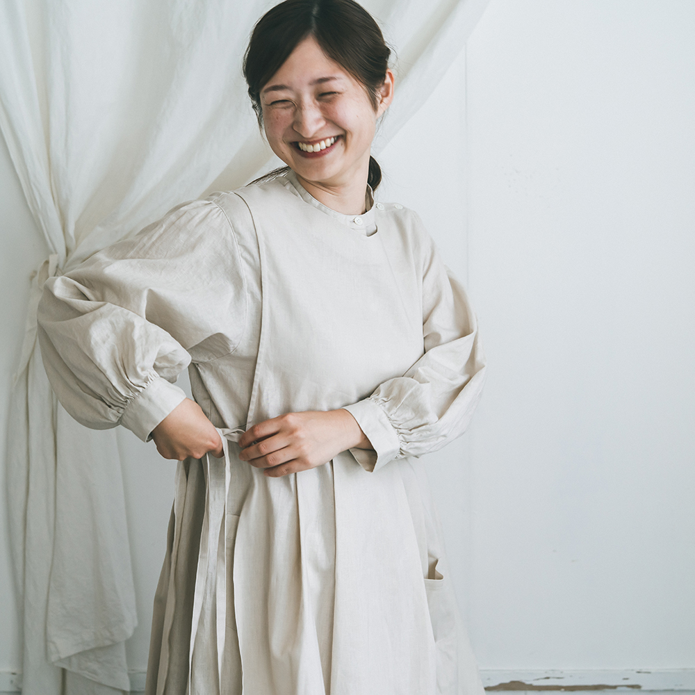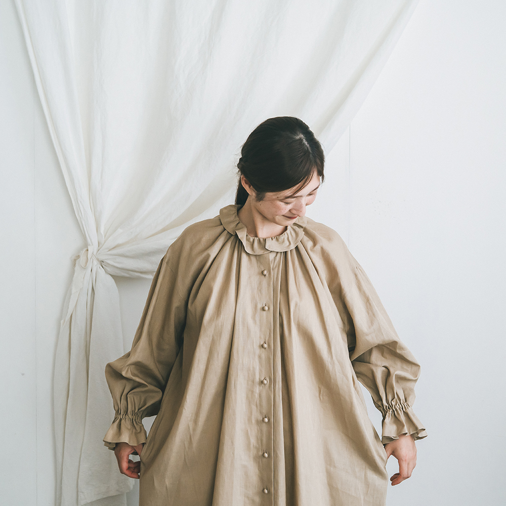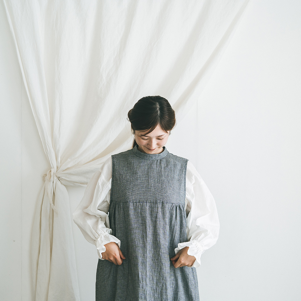首まわりを包む大きな襟とドロップショルダーの袖が華奢に見せてくれる新作のエミリーワンピース。柔らかな綿麻素材が肌触りと着心地がよく、長めの着丈も重くならずにお使いいただけます。可愛いチェックと白色、黒色をご用意いたします。