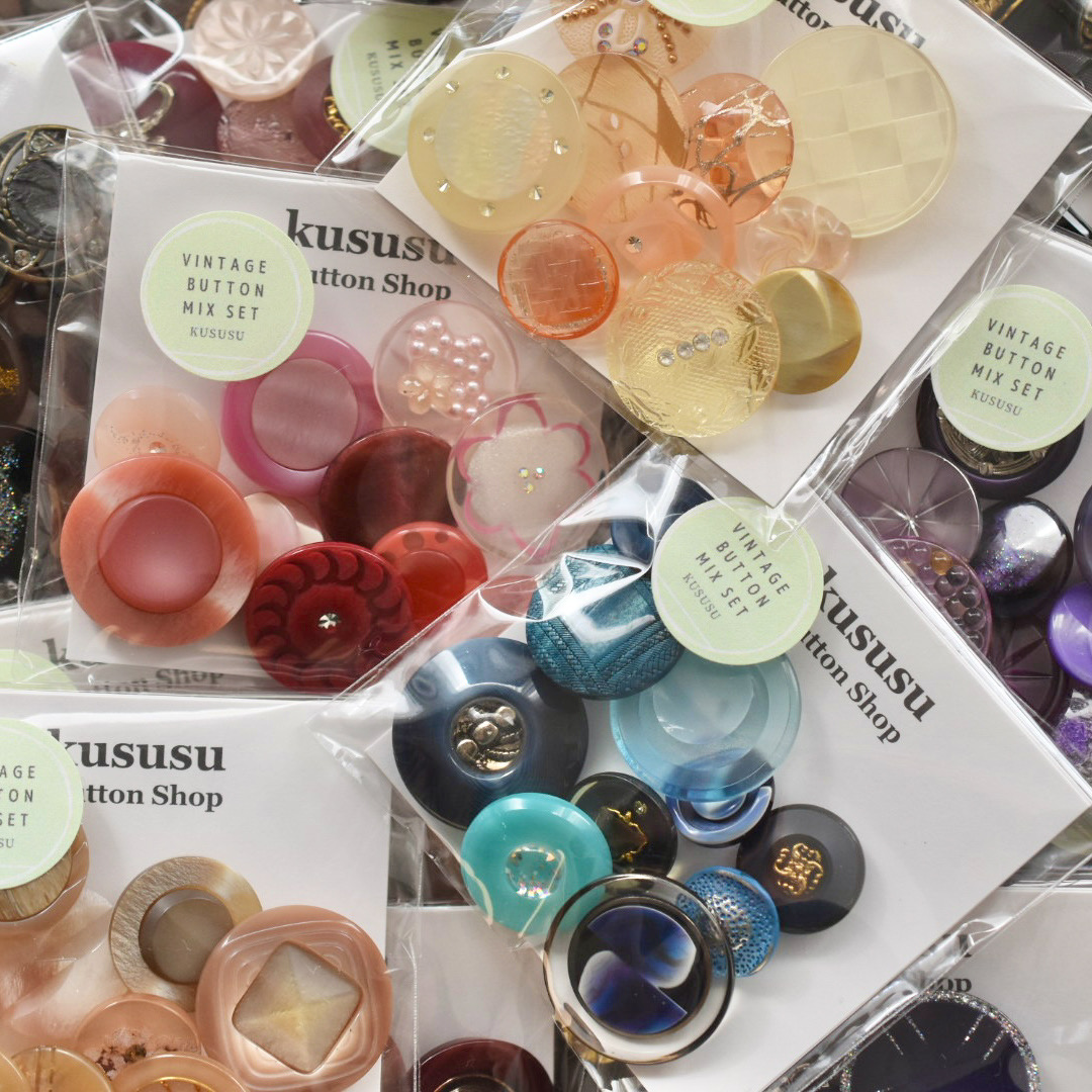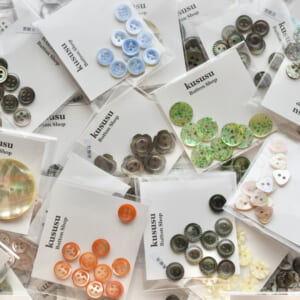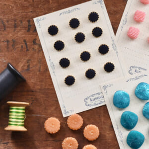 ちょっと変わったボタン専門店「kususu(クスス)」。“ボタンの可能性と新たな提案、新しい素材への挑戦”をコンセプトに、パステルカラーが印象的なフランスのヴィンテージボタン、ドイツのヴィンテージガラスボタン、洋裁が盛んだった1970年代の日本製ボタンなど、常時3,000種類をストック。丁寧に施された装飾や愛らしい形は、まるで宝石のようで眺めているだけで心が弾みます。洋服はもちろん、アクセサリーやディスプレイなど、ボタンのある暮らしを自由に楽しんでみませんか?