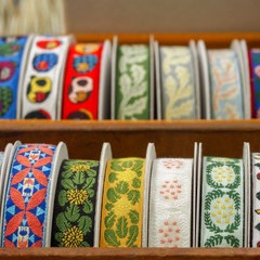 “Have fan ribbn life! ~リボンから広がる作る楽しさ!~”をコンセプトに、可愛くてレトロさをはらんだリボンと小物を手がける「レピヤンリボン」。国内最大級のチロルリボン工場が生み出すリボンは、「紋紙」という穴の開いたパンチカードを用い、糸を一本一本操り、唯一無二の模様を織り上げています。「あなたの宝石箱のように特別な存在でありたい」との願いを込めてつくられるそのリボンは、日常に彩りと小さな幸せを添えてくれるよう。洋服やバッグのアクセント、ラッピング、手芸作品など、いろいろなアイデアで暮らしに取り入れてみませんか?