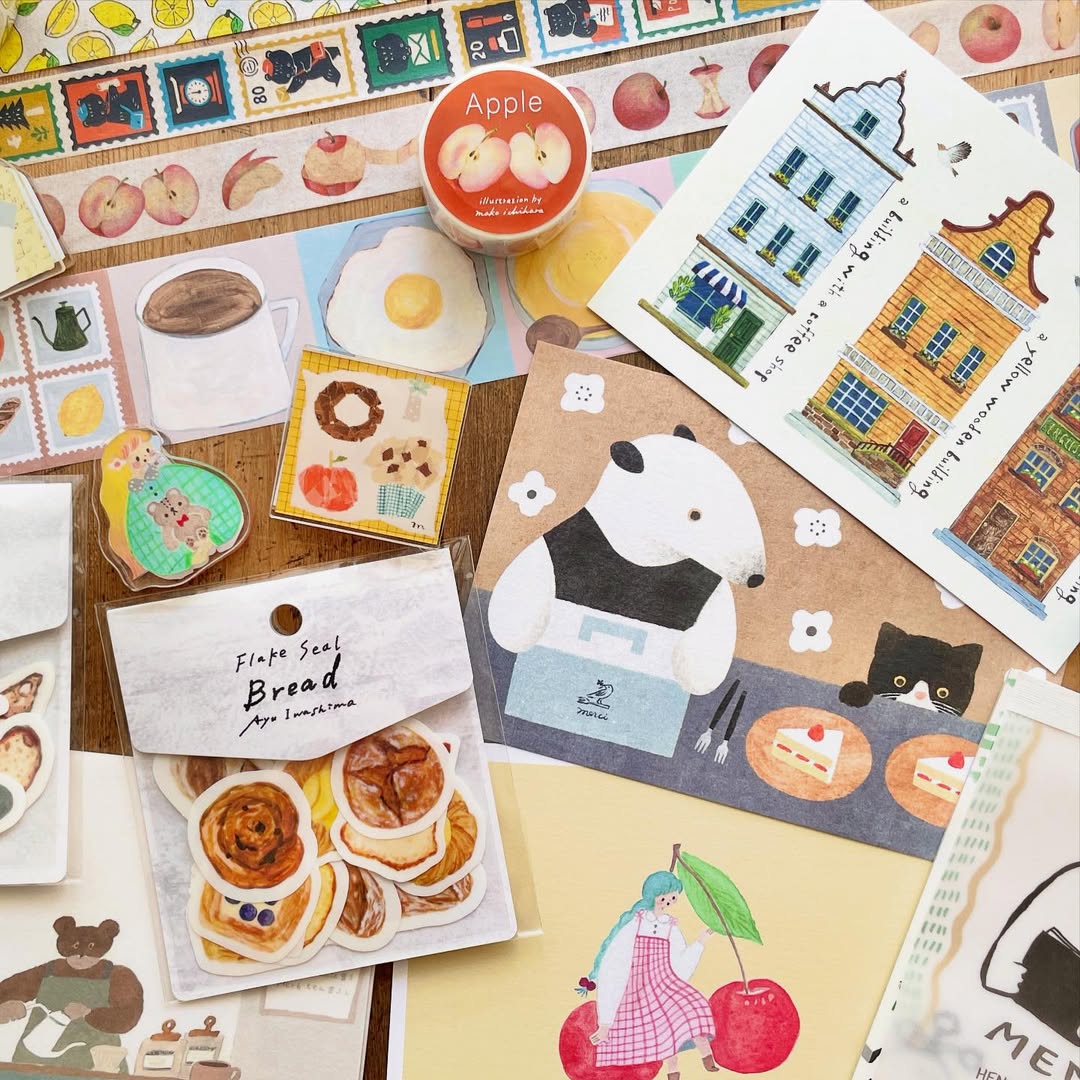 「GOOD PRINT」「GOOD CRAFT」「GOOD FOOD」を詰め込んだ、全国各地を飛びまわる手紙舎雑貨店。東京都調布市を拠点に、長野県松本市、群馬県前橋市に実店舗があります。イラストレーターやデザイナーなど、私たちが敬愛する作り手とコラボして制作する手紙社オリジナルアイテムはもちろん、靴下やハンカチをはじめとする布小物、カットクロス、ぬいぐるみなど、布にまつわるアイテムをたくさんご用意してお持ちしています。