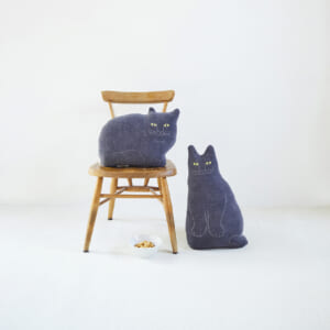 「黒猫のクッション」手染め手刺繍で仕上げた猫の形のクッション。