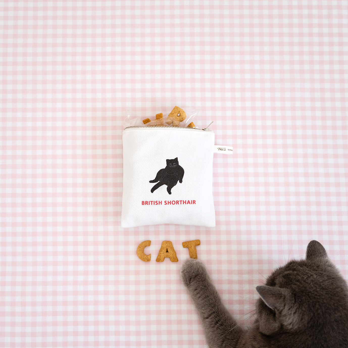 「BSHポーチ」泥染で描いた猫のイラストを、リトアニアで丁寧に織られたコットンにプリントしたFANTASTIC CATシリーズのポーチ。