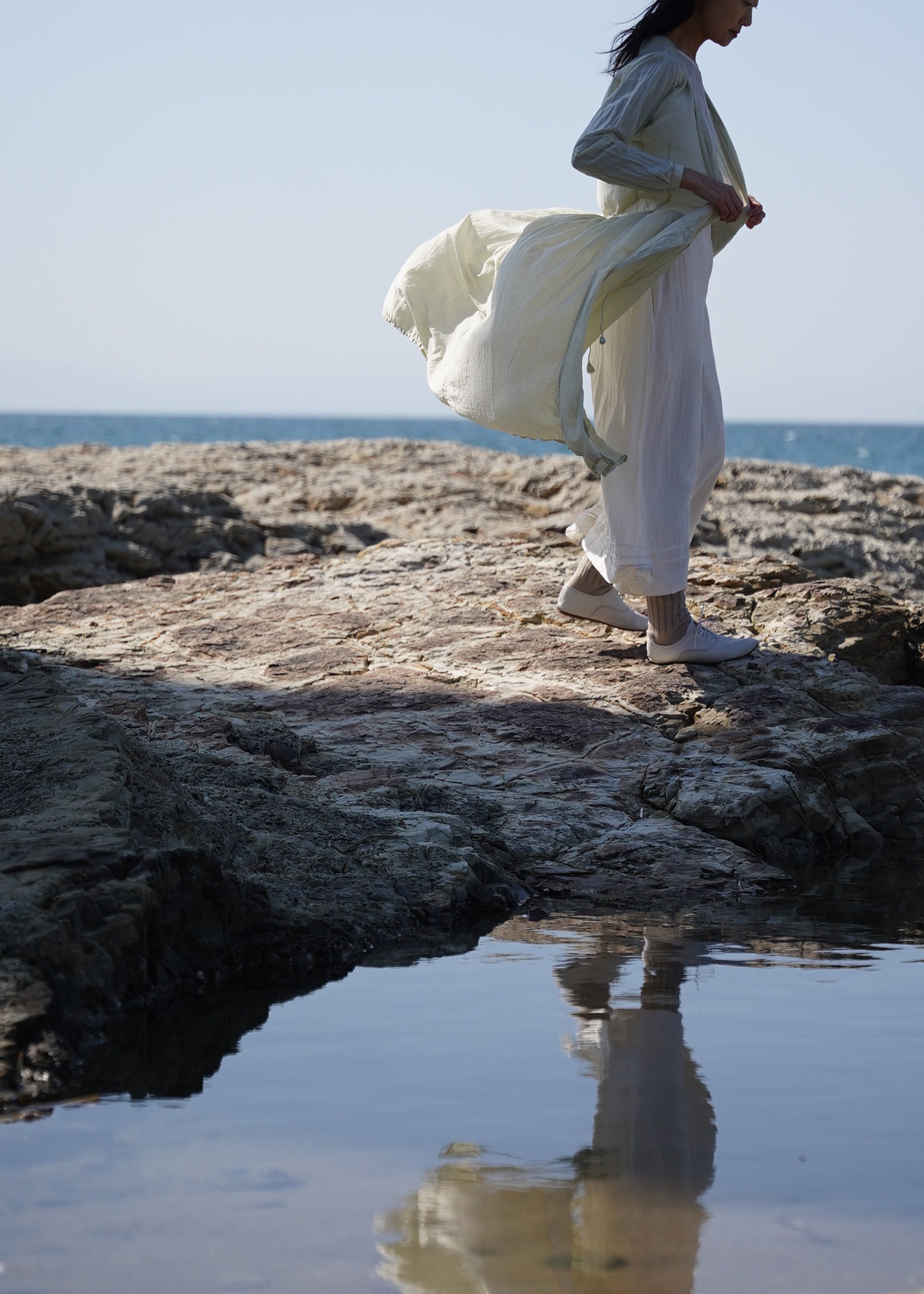 ヨーロッパのようでもあり、アジアのようでもある、そんな遠いどこかの国のエッセンスが感じられる「yatra(ヤトラ)」の服は、デザイナー・則竹里沙さんが、世界各国を旅して出会った素材や人、技法、そして感動を、テキスタイルからデザイン、パターンまで手がけることで表現。インドの手刺繍やブロックプリントなど職人さんの伝統技法を生かし、なるべく天然素材を使い、ゆっくりていねいにつくり上げています。旅する足取りのように軽やかなデザインの服には、“目的地に一緒に歩んで行ける、相棒のような服になれたら”という思いが。